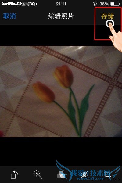 第四步,最后,点击右上角的“存储”按钮,即可保存旋转后的照片。