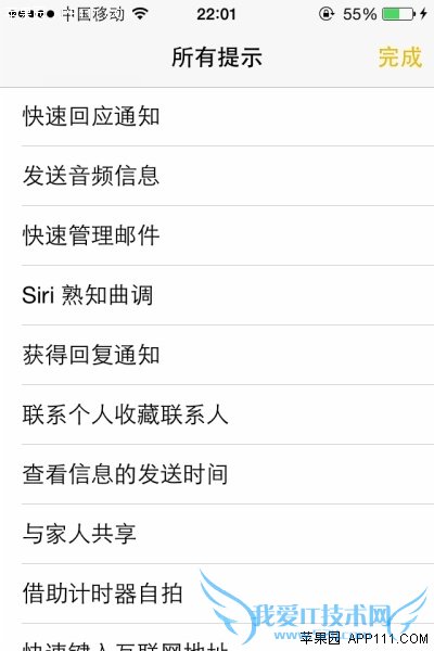 在主屏幕中,点击“提示”应用,即可进入相关页面,查看iOS系统的使用技巧。