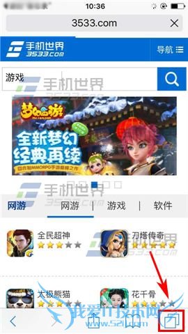 1)在待机界面,点击【Safari】进入,再点击右下角【小正方形】重叠图标。(如下图)