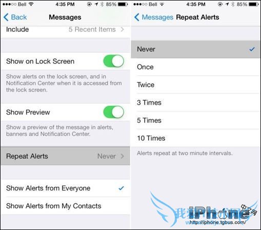 很多时候我们都没有办法及时的读取手机短信,而对于苹果设备而言有个头疼的问题就是它默认在iOS设备设置了重复提醒(间隔为两分钟),这在一定的程度上是费电的,所以接下来小编来教大家iOS7通知中心信息重复如何关闭。