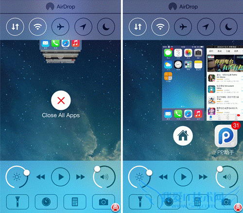 Auxo2已经兼容iOS7.0—7.0.6版本,是一款美化iOS后台应用管理界面的插件,可以同时关闭两个后台应用,也可以一键清除后台所有的应用。并且,在多任务栏里搭载了蜂窝数据、3G开关、WiFi、闪光灯等快捷开关,增加了iPhone屏幕亮度调节功能和美化了音乐快速播放的界面。(PP助手温馨提示:该插件目前还不支持iPad。)