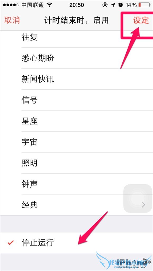 4、然后在这里,下拉到最下面,勾选“停止运行”,再点击右上角的“设定”。