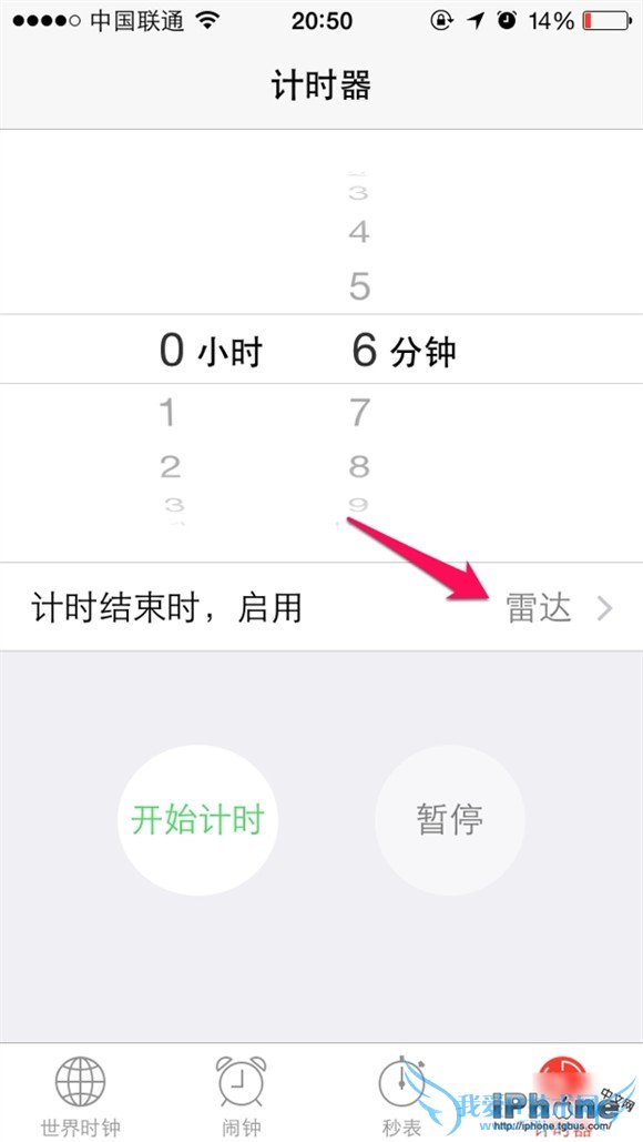 3、进入到计时器后,点击“在计时结束启用 雷达”这个选项。