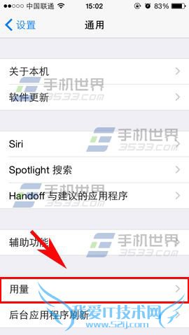 1)打开iphone5s手机【设置】,点击【通用】,选择【用量】。