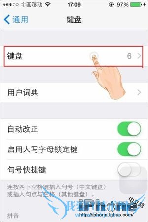 1、在设置应用中,通用选项页面,点击“键盘”。