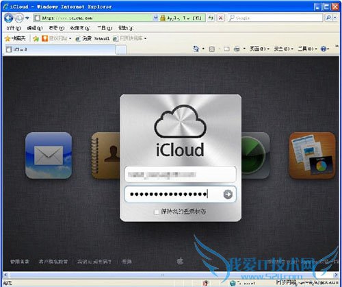 2、用IE或者其他浏览器登录网址:www.icloud.com,在iCloud主页输入iCloud帐号并登录。