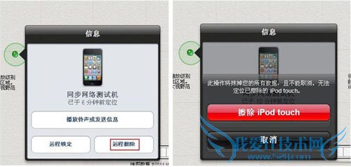 3.点击远程删除,可远程删除iPhone/itouch上的信息。适用于找不回iPhone的情况下,可将隐私性质的信息销毁,将损失降到最低。