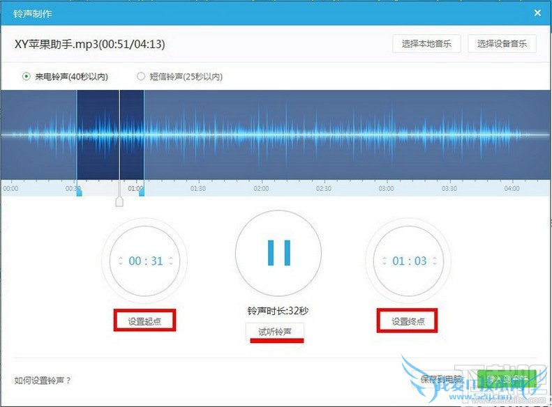 可自定义设置起点和终点,也可以试听制作的铃声