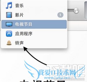 接着再点击左上方的资料库选项列表,随后再选择“铃声”选项