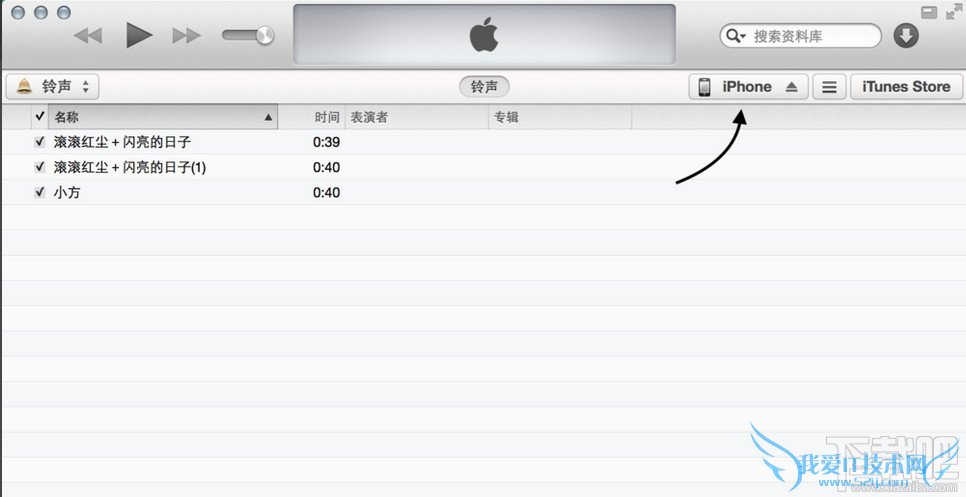 铃声文件拖完以后,接着再点击 iPhone 图标,