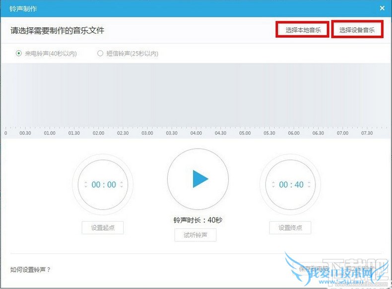 选择电脑本地或者你手机设备里的歌曲设置铃声