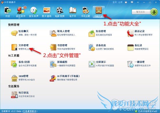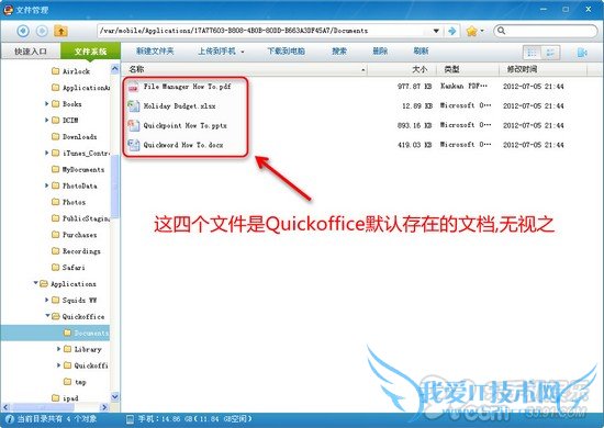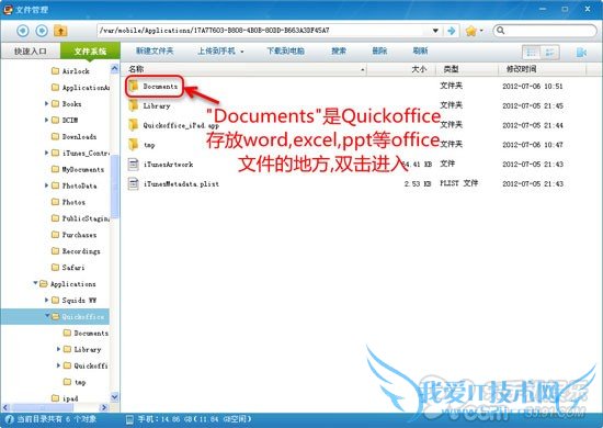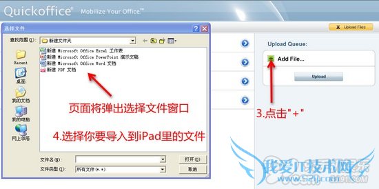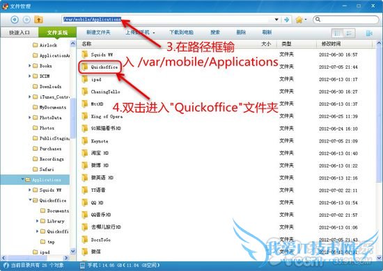 第六步.使用91助手将文件传入iPad如下图操作,并用Quickoffice进行查看编辑