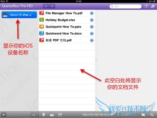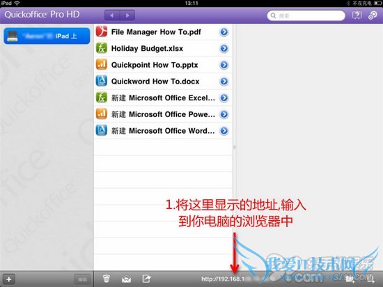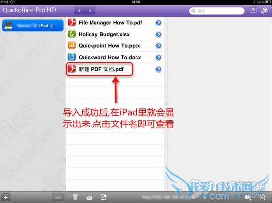 第三步.在iPad上打开Quickoffice软件,如下图操作