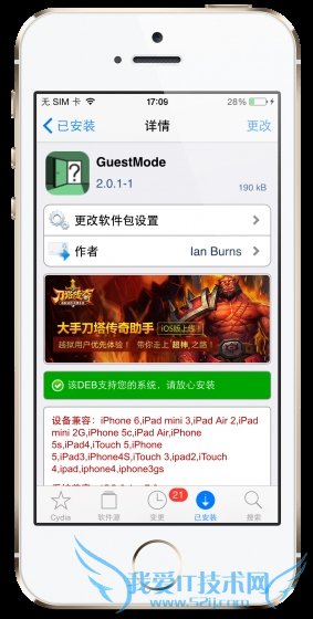 Guestmode是一款老牌加密插件了,相信越狱老果粉都应该认识它了。GuestMode最大的特色就是可以开启一个访客模式,访客模式的限制程度由用户自己来决定,用户可以选择打开哪款应用,控制访问相机、通知中心、控制中心、Siri、Newsstand、拨号盘以及应用切换器等。
