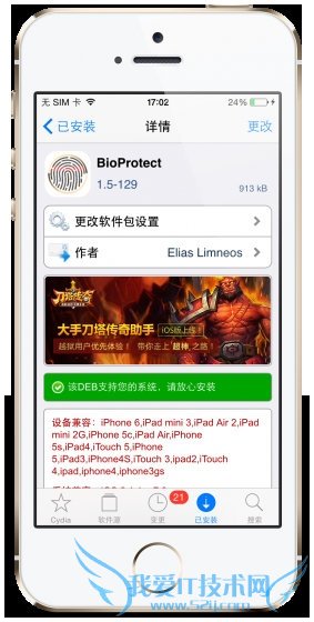 自从iPhone5s出来后,类似指纹加密山的插件越来越多,大部分这种插件的功能都差不多。而BioProtect算是其中支持加密内容比较多的一个插件,它不仅可以加密相册、或某个软件,还可以将Siri,某个文件夹、比如wifi 蓝牙等功能的加密,加密的范围可谓非常广。