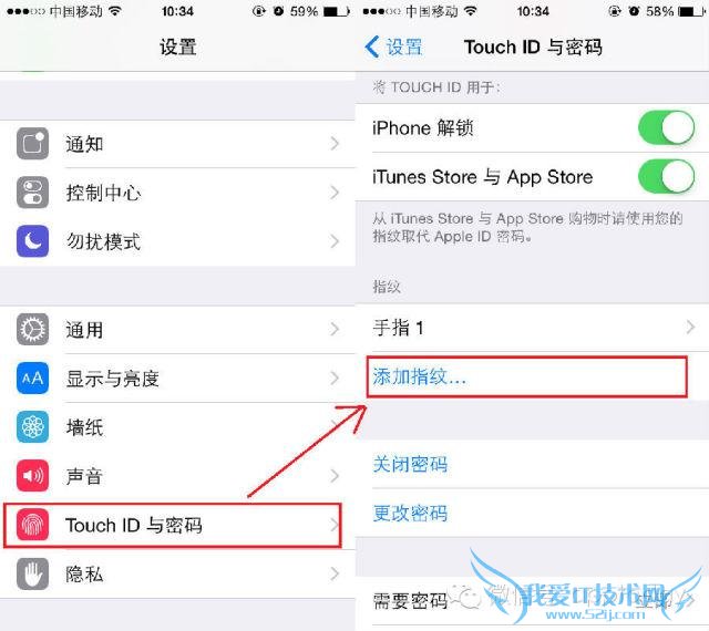 我们可以设置——Touch ID 和密码——添加指纹 (注意第一次添加使用 Touch ID 需要设置锁屏密码)。
