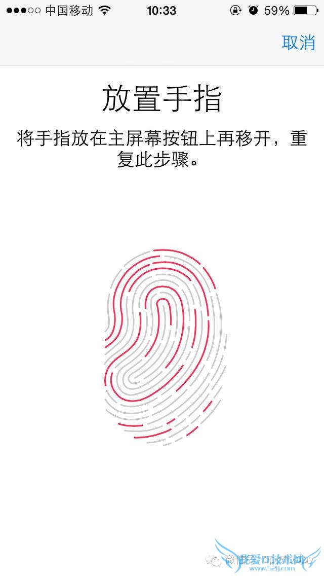 然后我们添加指纹,看看是否成功。如果是山寨iPhone手机则一定是无法添加的。当Touch ID设置好后,你可以进一步尝试用它来解锁,这样一来就能知道所购买的是否山寨iPhone了。