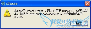 升级后,你会发现iTunes却出现以下弹窗,iTunes无法与iPhone同步,这是由于iOS 7 GM目前仅支持最新版本的iTunes11.1,而iTunes11.1暂时只有Mac版,所以目前升级的Windows用户还不能使用旧版iTunes.