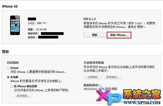 1.2、备份设备数据,将设备固件刷到iOS 7.0,刷固件方法请查阅文末附录1;