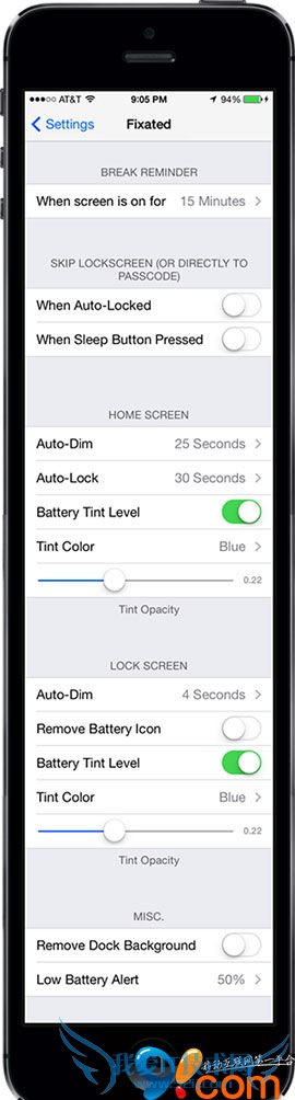 Fixated是一款让你电量更加持久插件,Fixated 核心功能是提供锁屏与解锁状态下自定义自动暗屏与自动锁屏时间,以降低屏幕亮度方式让你的电量获得更加持久的使用时间。除此之外,Fixated 还有个有趣的功能,它可以让你的电池电量以透明自选颜色图层方式显示到壁纸上方,随着电量的减少与增加,颜色图层高度也会随之降低或升高,非常直观。