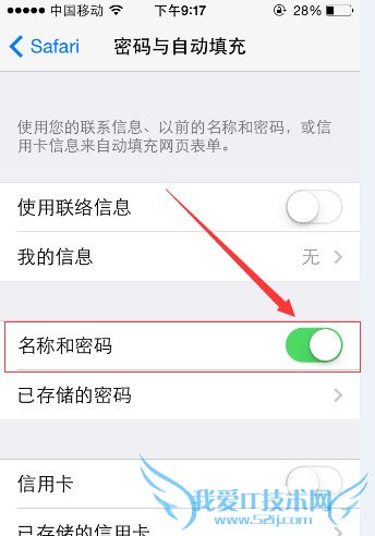 4:将“名称和密码”后面的开关键打开,我们的设置过程就结束啦。不过,还有最关键的最后一步。