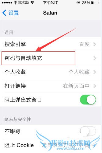 3:在Safari中我们看到有“密码与自动填充”选项,点击进行下一步。