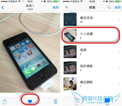 选定照片后,还可以通过心形图标快速收藏照片;收藏的照片可以在“相薄”页面下通过“个人收藏”一项进入查看。
