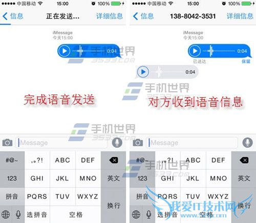2)录制完后可以单击试听,点击【向上的箭头】按钮即可完成发送。对方收到后直接点播放即可收听。(如下图)