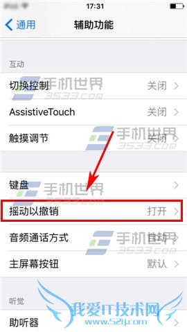2)进入后点击【摇动以撤销】,接着关闭【摇动以撤销】右边按钮即可。(如下图)