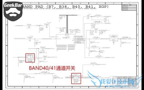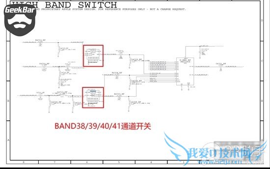 在电路原理图上可以看到缺失的芯片是负责band38/39/40/41射频功放开关,TD-LTE网络无法开启。这就是所谓的硬件阉割。