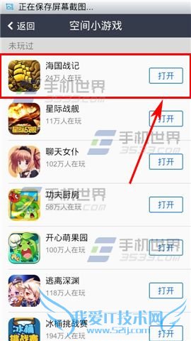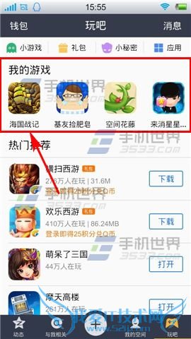 1)首先打开【手机QQ空间】,进入界面后点击右下角【玩吧】后在点击左上角【小游戏】,选择自己喜欢的游戏点击后面的【打开】。(如下图)
