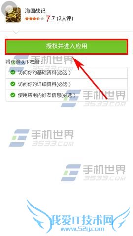 2)界面跳转后点击【授权并进入应用】,等玩完退出来后在【我的游戏】那里就可以看到了呢。(如下图)