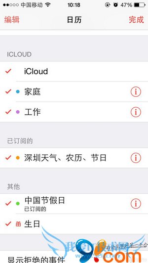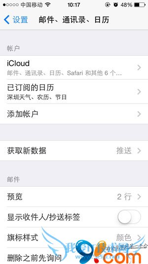 第三步:打开你的iphone,进入设置->邮件、通讯录、日历->添加账户->其它->添加已订阅的日历->输入刚才记下的地址->下一步,如果没有错误则点存储。