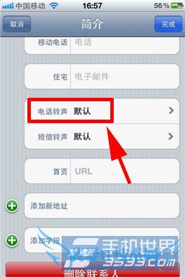 2)在联系人页面选择右上角“编辑”,找到“电话铃声”并点击进入。
