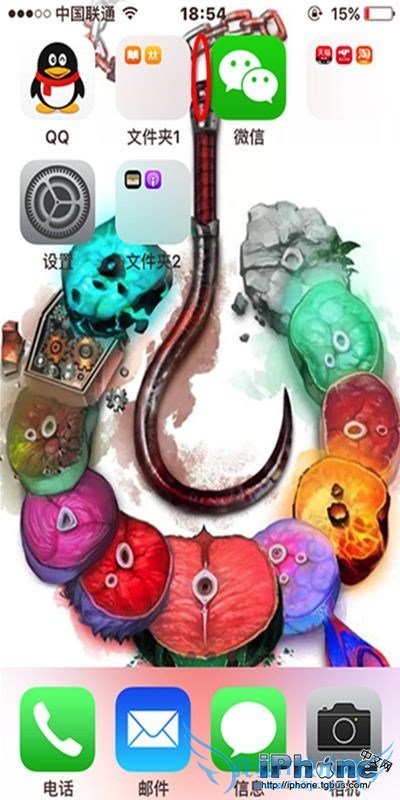 打开文件夹 2 后,点击文件夹 2 里面你要隐藏的 App 图标一直按,抖动为止。然后把要隐藏的 App 拖到桌面外屏幕最底下(操作这一步的过程中,一定要一直按住 App 的图标,不要放手!)。然后要隐藏的 App 图标就消失了,到此隐藏 App 完毕。