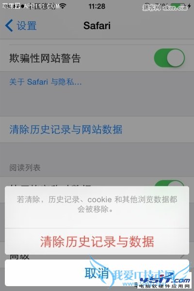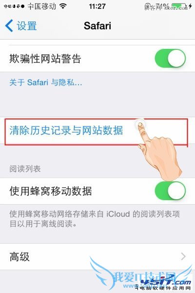 第二步,在Safari选项页面,点击“清除历史记录与网站数据”。