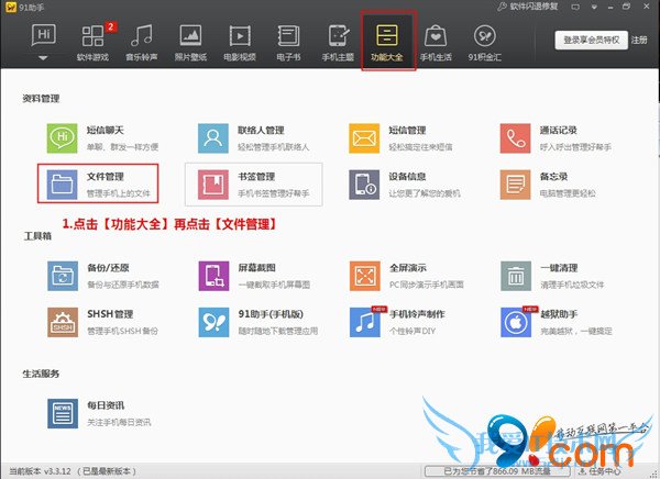 1.下载工具91助手以及文件修改器