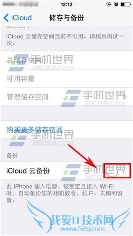¡¡¡¡2)µã»÷¡¾´¢´æÓ뱸·Ý¡¿£¬½øÈëºó¹Ø±Õ¡¾iCloudÔÆ±¸·Ý¡¿Óұ߿ª¹Ø¼´¿É¡£(ÈçÏÂͼ)