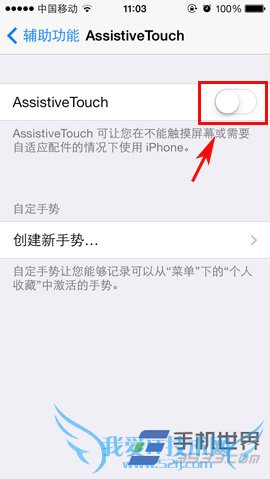 2)在“辅助功能”界面,大家就能看到“AssistiveTouch”功能,点击进入,然后打开该功能按钮即可。(如下图所示)
