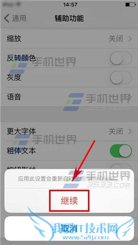 ¡¡¡¡2)¿ªÆô¡¾´ÖÌåÎı¾¡¿Óұߵİ´Å¥£¬½Ó×ÅÐèÒªÖØÆôÊÖ»ú£¬µã»÷¡¾¼ÌÐø¡¿¼´¿É¡£(ÈçÏÂͼ)