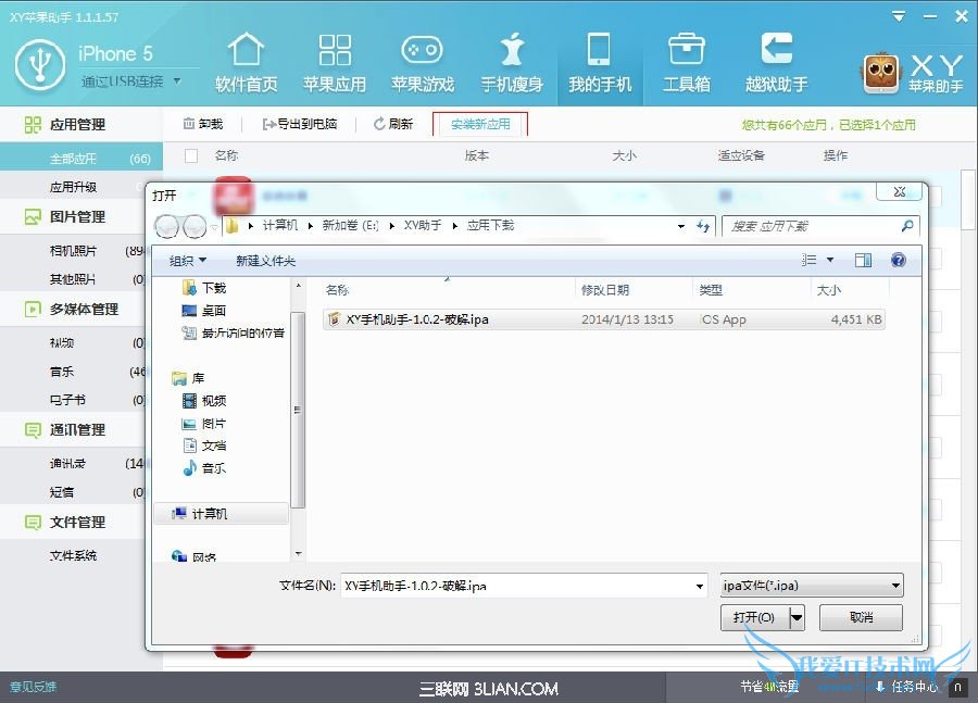 4.点击应用管理上方的“安装新应用”按钮,可选择安装已经下载到本地PC中的应用到手机中。