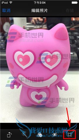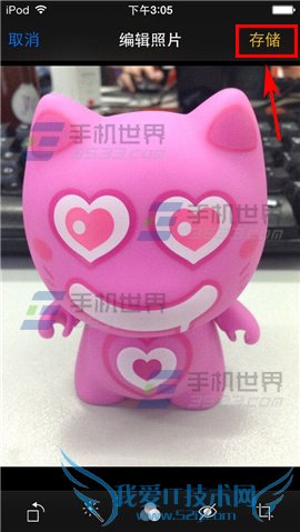3)之后点击【存储】,原来的照片就变了我们剪裁过的一小部分了,这样就很好的保护了我们照片的隐私部分。可能大家会说,这样操作,不把照片给毁了吗,跟删除有什么区别呢?其实不然,要恢复照片也是相当简单的,只要反向操作一次即可。打开你刚才隐藏的照片,点击【编辑】。