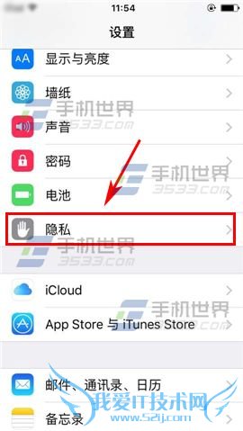 1)点击【设置】,进入后点击【隐私】一栏。(如下图)