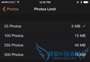 3,和同步音乐到Apple Watch上的方法一样,用户可以选择同步多少张照片(和同步多大内存的照片)到手表上。选择完毕后,点击左上角的“返回箭头”。