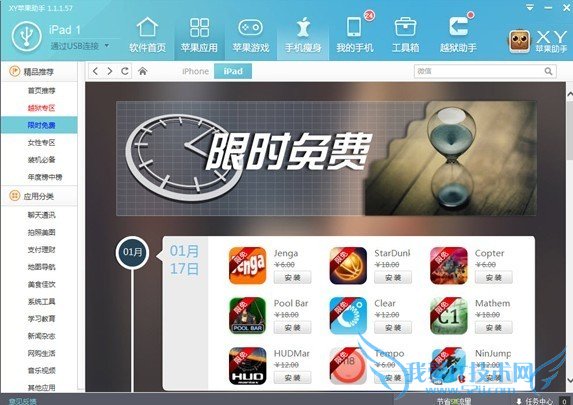为了方便用户找到想要的应用或游戏,XY苹果助手不仅为用户提供了详细的应用/游戏分类,还为用户提供了装机必备、年度榜中榜、女性专区、越狱专区、限时免费这几个特色栏目,非常贴心。当然搜索功能也是少不了的。