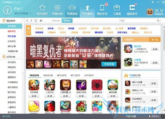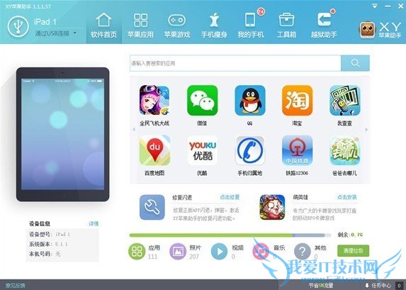 如果需要将ipad或iPhone连接到电脑管理并且进行数据传输的话,就需要用到iTunes这个工具,可是不少用户都在抱怨iTunes有点难用。于是便出现了许多类似于iTunes的IOS助手类软件,利用它们可以比iTunes更加方便的安装备份APP及对IOS设备进行管理、数据备份等的操作,接下来看看一款新兴的助手软件--XY苹果助手的好易快体验吧。