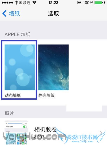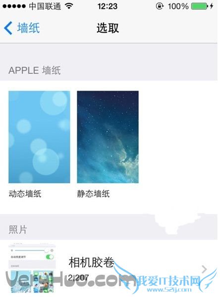 在壁纸选择选项中,可以选择苹果的内置壁纸,也可以选取手机相册中的图片,如图所示