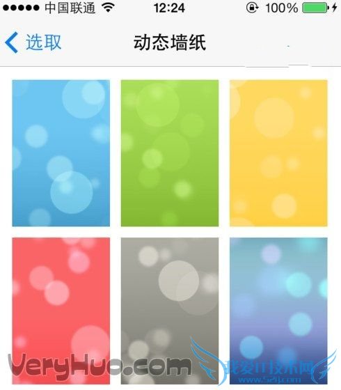 系统内置了七款动态壁纸,由于发布了新一代多色 iPhone 5C的原因,所以这里可以看到动态壁纸也有多种颜色。点击一个喜欢的动态壁纸即可,如图所示