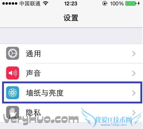 在设置列表中找到“墙纸与亮度”选项,点击进入,如图所示