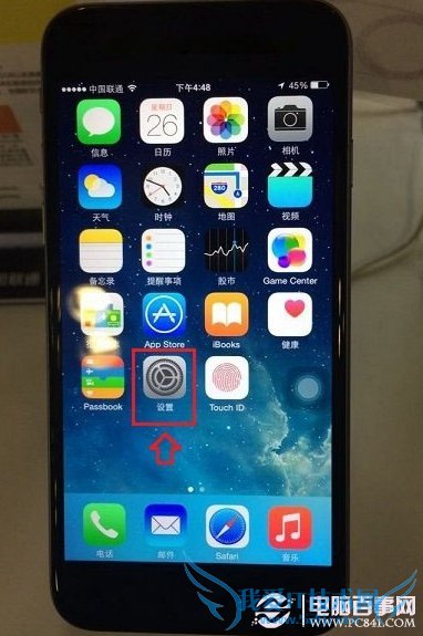 1、进入iPhone 6主界面,找到“设置”,并进入,如下图所示: